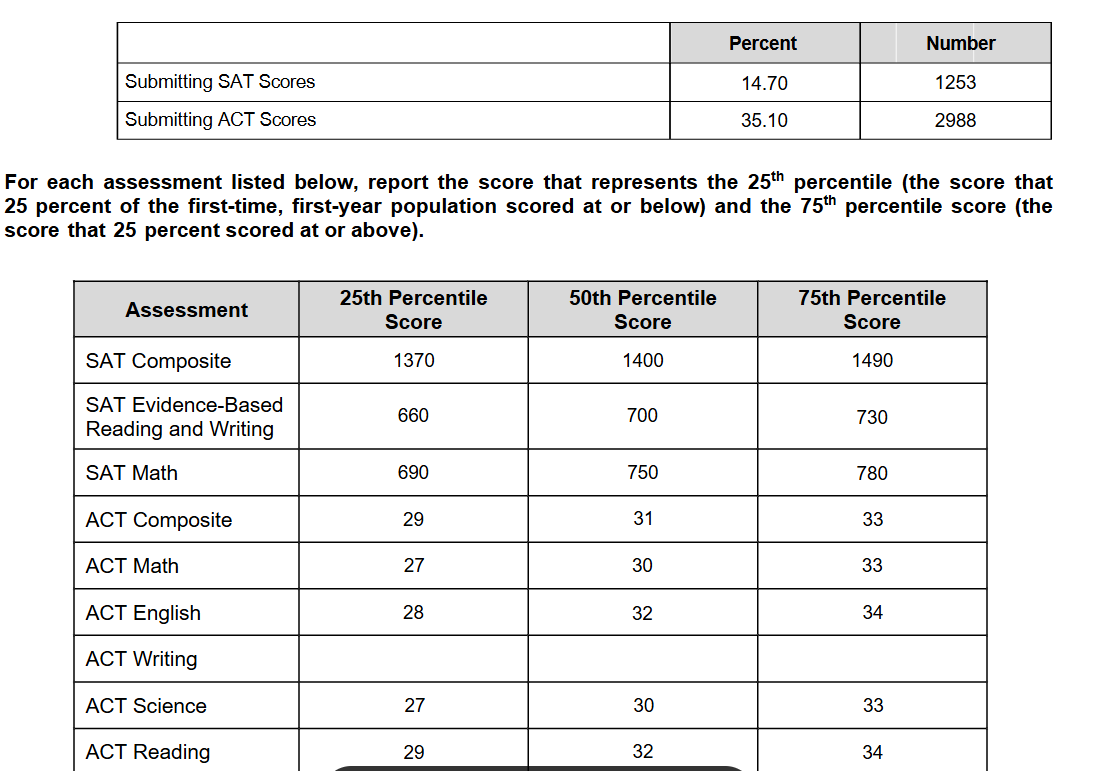 • What is the middle 50% SAT/ACT range?